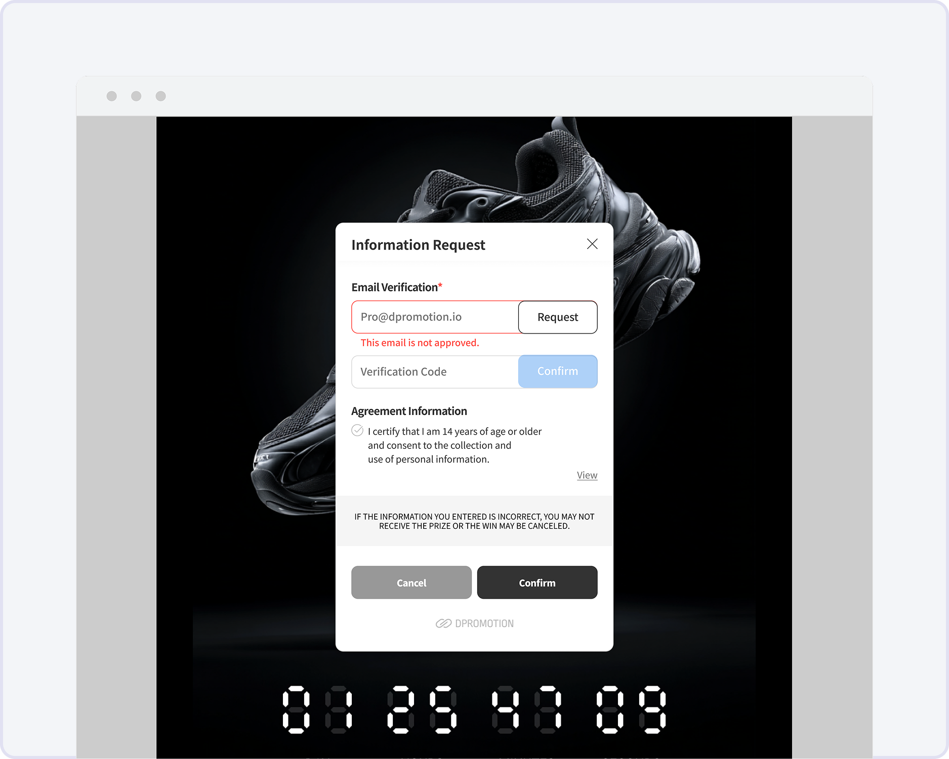 Participants whose email addresses are not registered on the whitelist will be unable to enter the promotion and will see the message: "This email is not approved."
