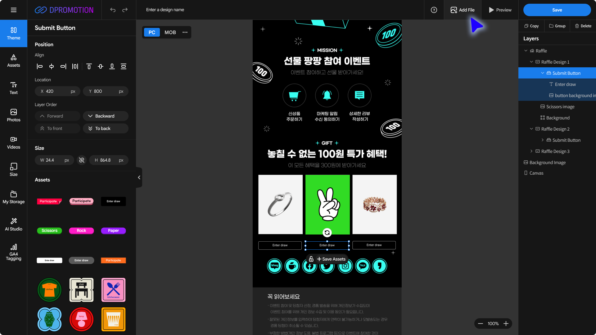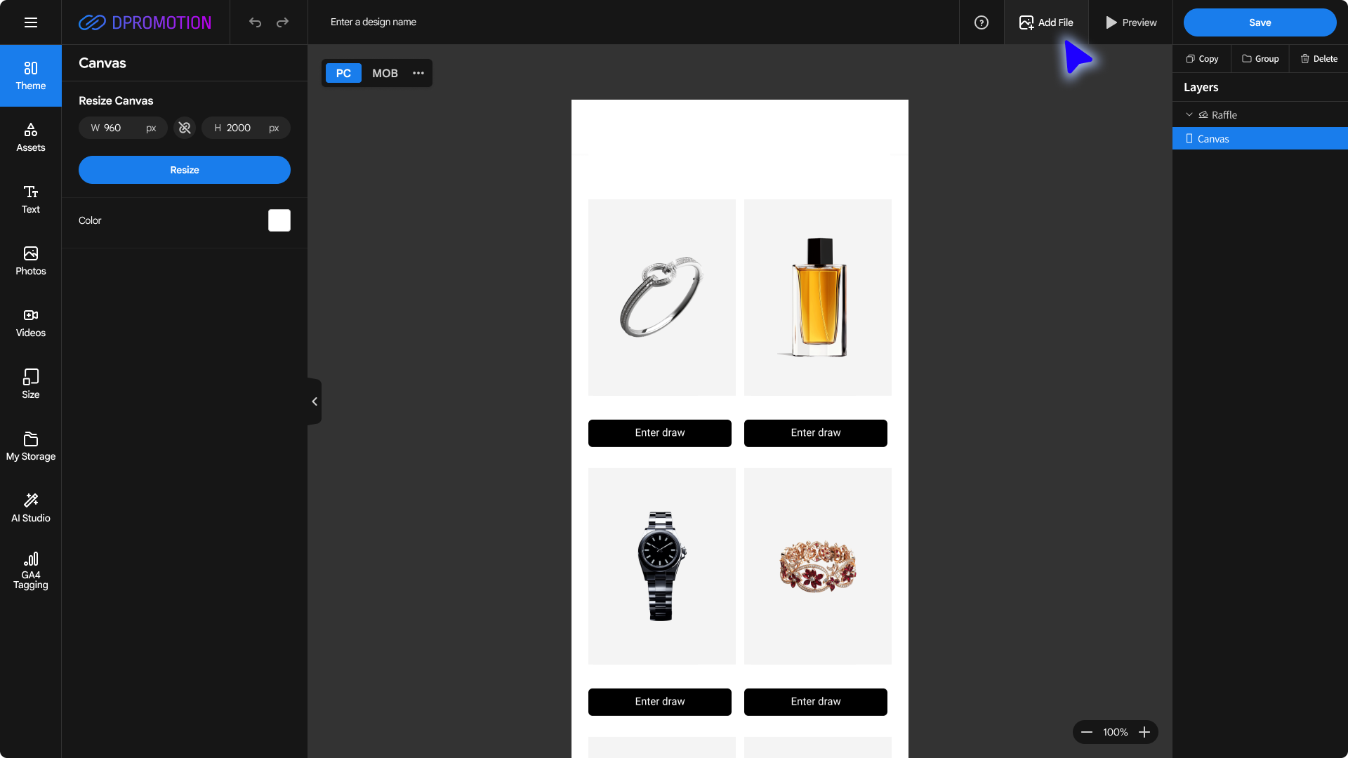 This feature allows you to operate a promotion by uploading your own design files instead of using the themes provided by Dpromotion.