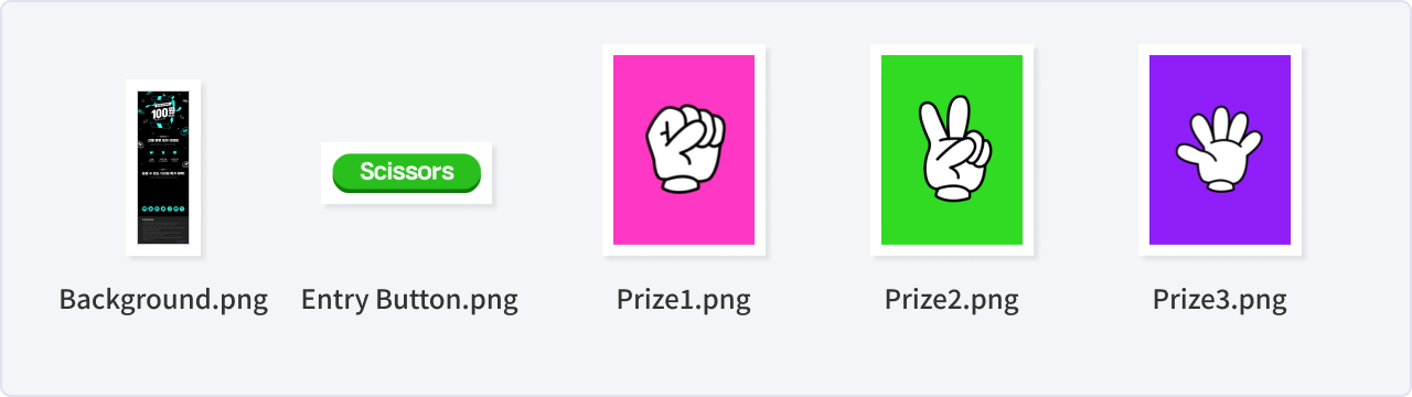 Based on the Raffle Design Guide, complete your design work and prepare the Background, Entry Button, and Prize Group files in the required file format.