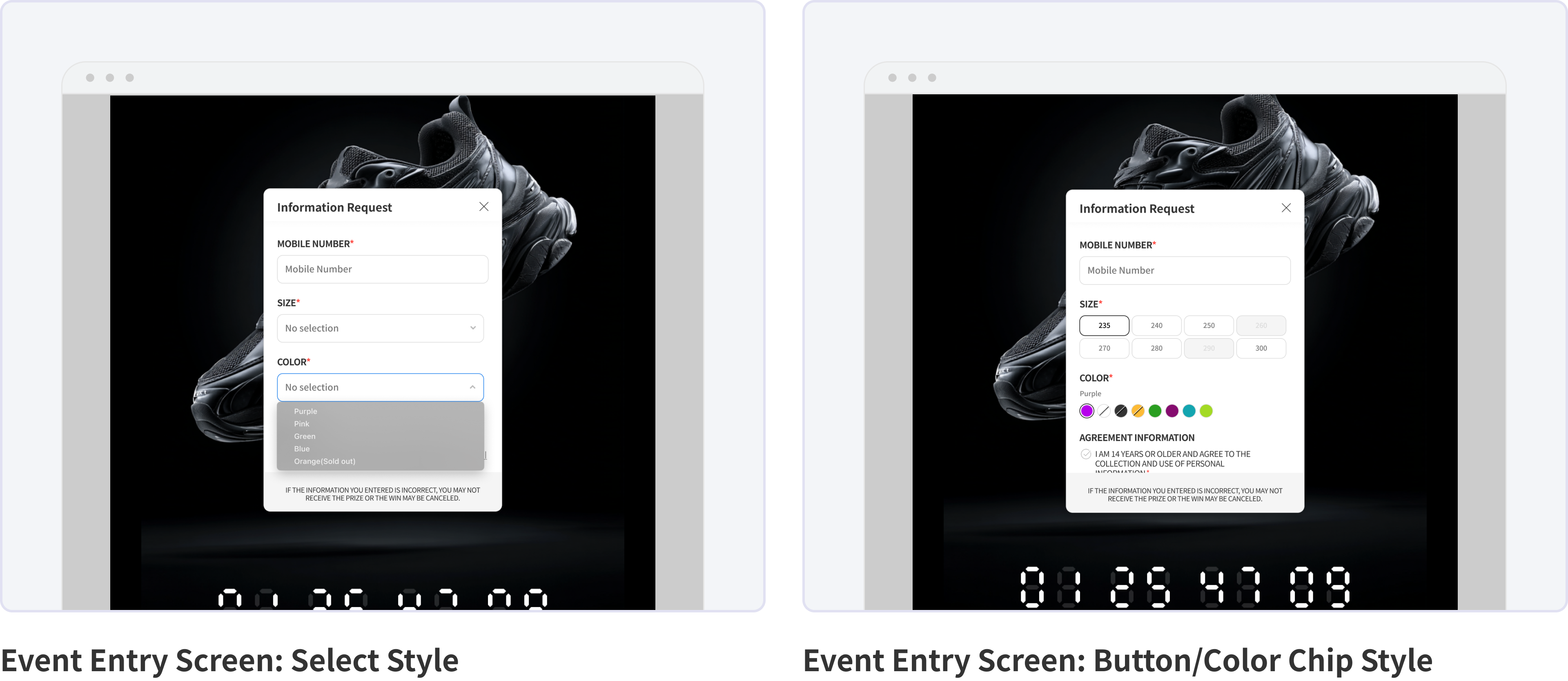 When running a raffle promotion, you can use the Set Prize Option feature to register product options such as color, size, and more.