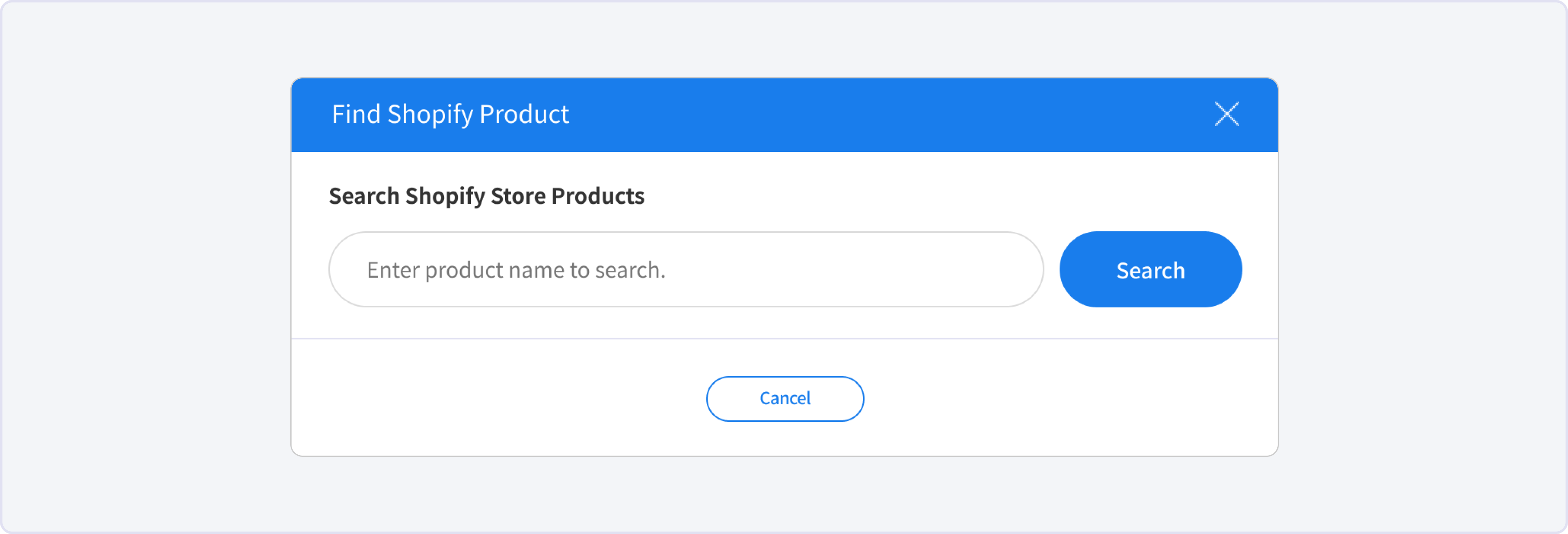 Enter the product name in the search bar on the Find Shopify Store Product screen and click Search.