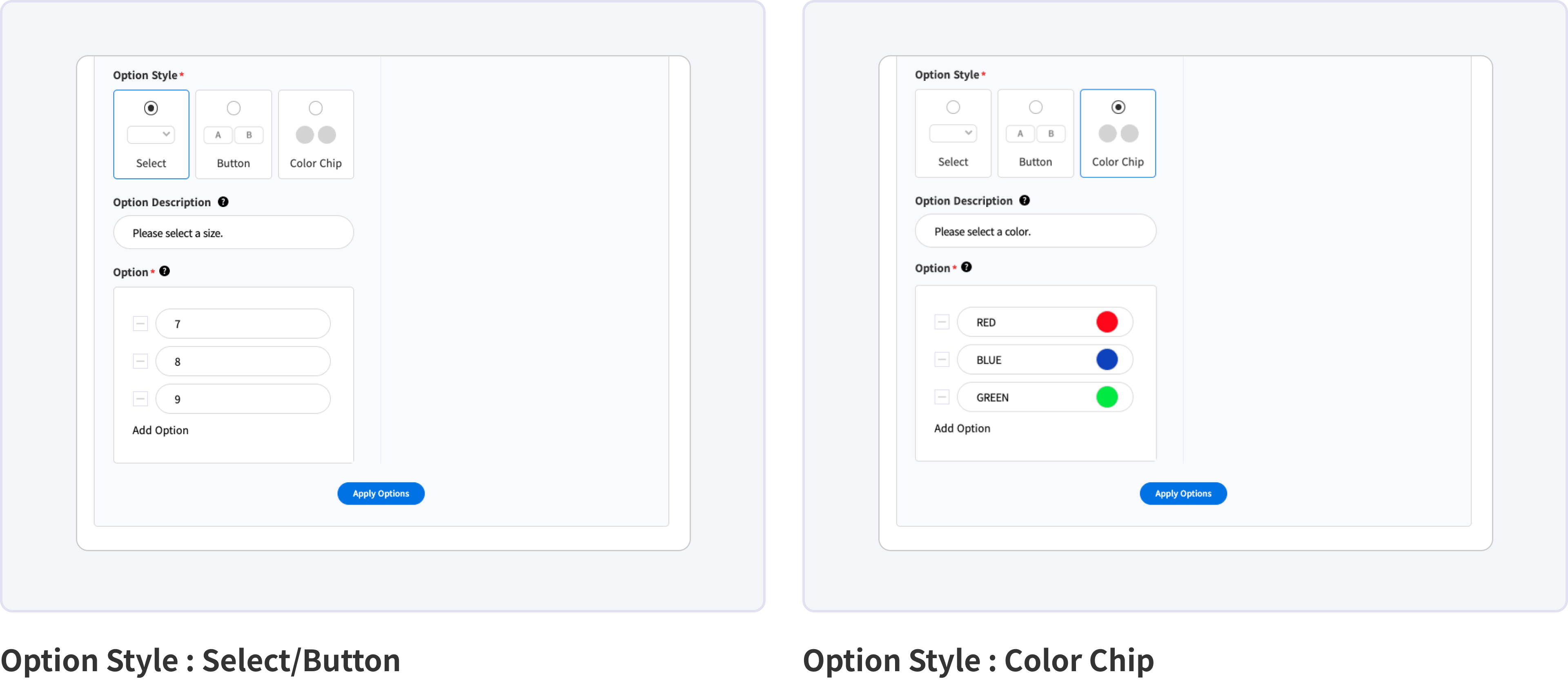 - If Color Chip is selected as the option style, you can choose the color of each chip.