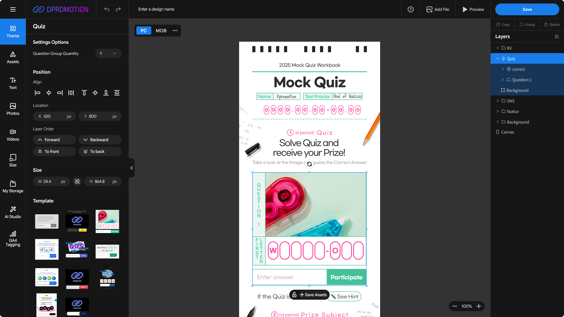 In the Quiz Editor, only certain objects support functions such as copy, delete, and reorder to ensure stable promotion operation.